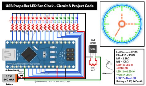 Web following the is the given circuit diagram for usb propeller led fan analog clock. It is making use of pov,persistence of vision, which means that if something appears in the same spot. As this project needs to rotate whole circuit assembly, there must be some prime.